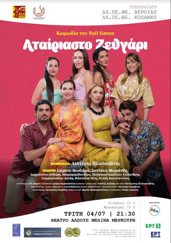 ΔΗ.ΠΕ.ΘΕ. Βέροιας | ΔΗ.ΠΕ.ΘΕ. Κοζάνης ΚΑΛΟΚΑΙΡΙ 2023 «ΑΤΑΙΡΙΑΣΤΟ ΖΕΥΓΑΡΙ» του Νιλ Σάϊμον ΣΗΜΕΡΑ ΣΤΙΣ 9.30 ΣΤΟ ΘΕΑΤΡΟ ΑΛΣΟΥΣ ΜΕΛΙΝΑ ΜΕΡΚΟΥΡΗ