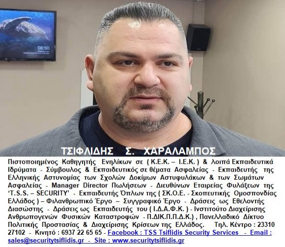 ΤΣΙΦΛΙΔΗΣ Σ. ΧΑΡΑΛΑΜΠΟΣ – ΕΚΠΑΙΔΕΥΤΙΚΟΣ ΣΩΜΑΤΩΝ ΑΣΦΑΛΕΙΑΣ – ΚΑΘΗΓΗΤΗΣ ΕΝΗΛΙΚΩΝ – ΣΥΜΒΟΥΛΟΣ ΑΣΦΑΛΕΙΑΣ – ΕΚΠΑΙΔΕΥΤΗΣ ΔΙΑΣΩΣΤΗΣ
