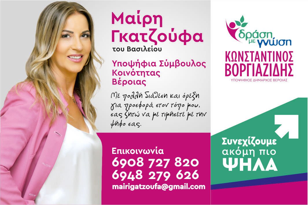 Αγαπητοί μου συμπολίτες/συνδημοτες, με αίσθημα ευθύνης αποφάσισα να συμμετάσχω στον συνδυασμό ΔΡΑΣΗ ΜΕ ΓΝΩΣΗ του Κωνσταντίνου Βοργιατζιδη και να διεκδικήσω την εκλογή μου ως σύμβουλος της τοπικής κοινότητας Βέροιας.