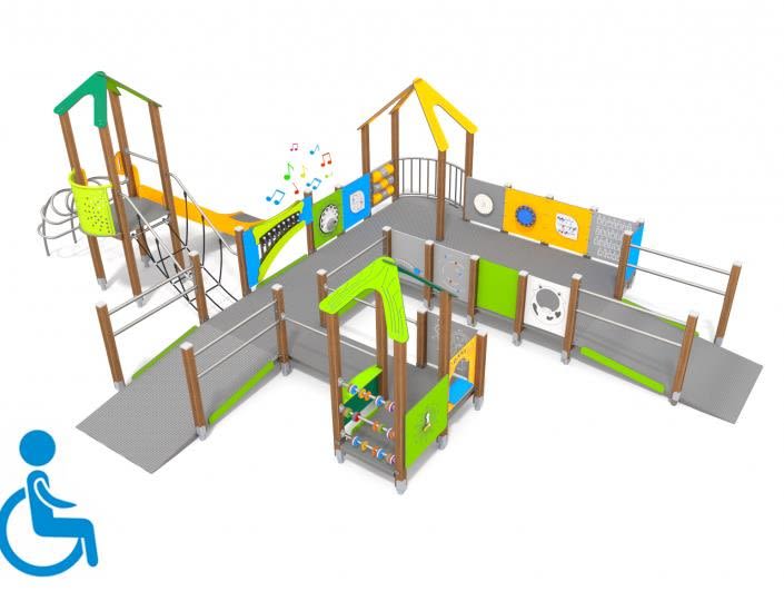 όπως Μύλος, τραμπάλα, κόυνιες, πάνελ δραστηριοτήτων, όλα κατάλληλα για ΑΜΕΑ