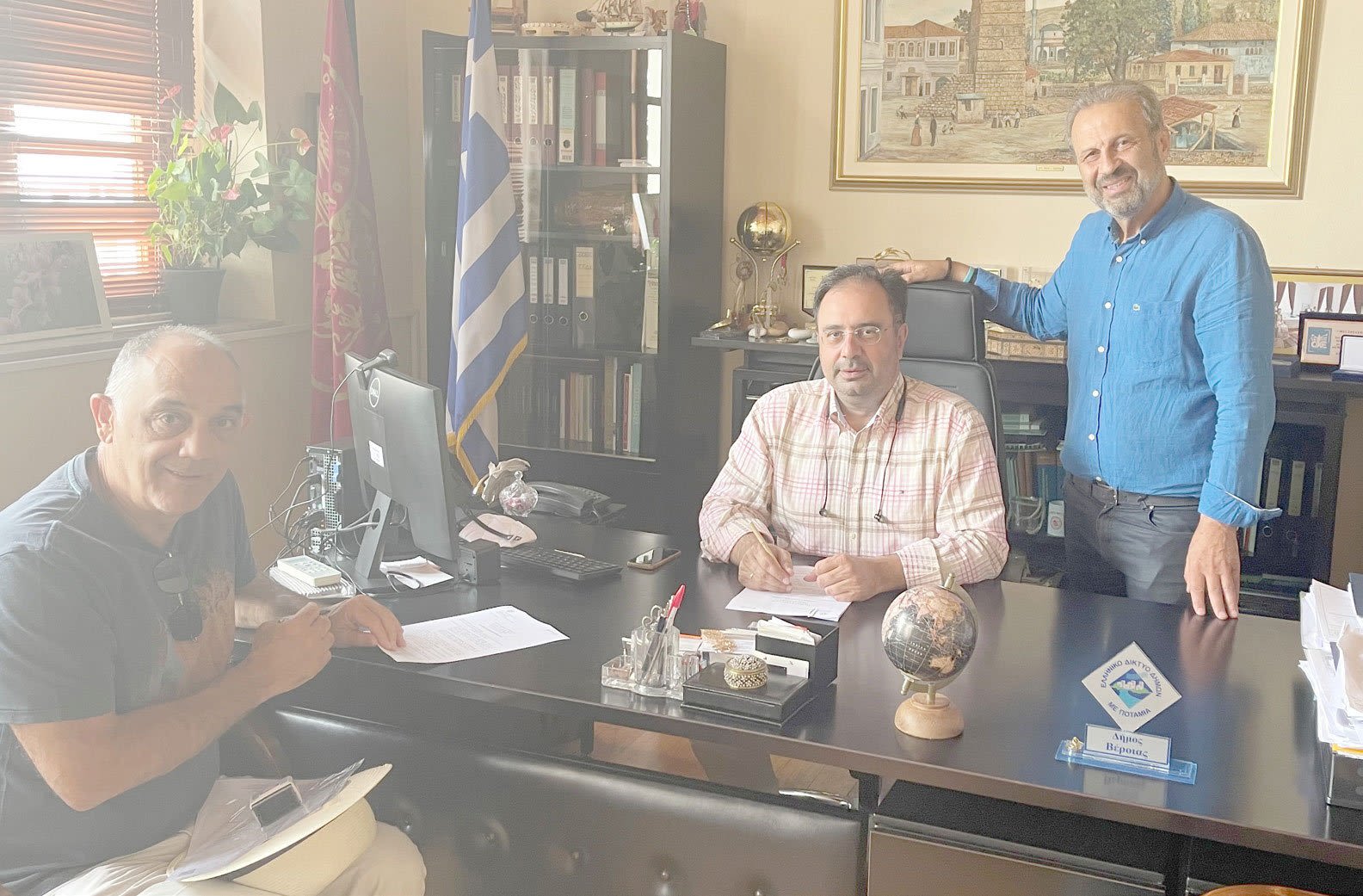 Στην υπογραφή της σύμβασης για την «ΚΑΤΑΣΚΕΥΗ ΤΟΙΧΙΩΝ ΑΝΤΙΣΤΗΡΙΞΗΣ» προχώρησαν ο Δήμαρχος Βέροιας, κ. Κωνσταντίνος Βοργιαζίδης και ο Αντιδήμαρχος Τεχνικών, κ. Αλέξανδρος Τσαχουρίδης, με τον κ. Κωνσταντίνο Ιωαννίδη, εκπρόσωπο της Κ. ΙΩΑΝΝΙΔΗΣ ΑΤΕ ΠΙΛΑΓΑΣ, που εδρεύει στη Βέροια.