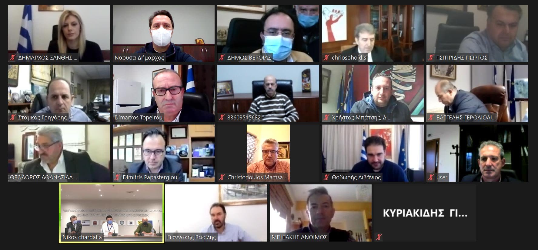 Επισημαίνεται ότι η σημερινή σύσκεψη, με τηλεδιάσκεψη, πραγματοποιήθηκε παρουσία των δημάρχων των προαναφερόμενων περιοχών με επικεφαλής τον Υπουργό Προστασίας του Πολίτη, Μιχάλη Χρυσοχοΐδη και με τη συμμετοχή του Υφυπουργού Πολιτικής Προστασίας και Διαχείρισης Κρίσεων, Νίκου Χαρδαλιά, του Υφυπουργού Εσωτερικών αρμόδιου για θέματα Αυτοδιοίκησης, Θεόδωρου Λιβάνιου, καθώς και του Γενικού Γραμματέα Πολιτικής Προστασίας, Βασίλειου Παπαγεωργίου, του Καθηγητή Σωτήρη Τσιόδρα και του Προέδρου της ΚΕΔΕ Δημήτρη Παπαστεργίου.
