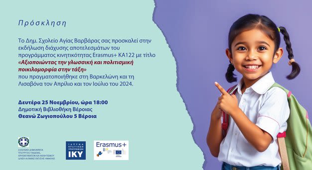 γλωσσική και πολιτισμική ποικιλομορφία στην τάξη», το σχολείο μας σάς προσκαλεί