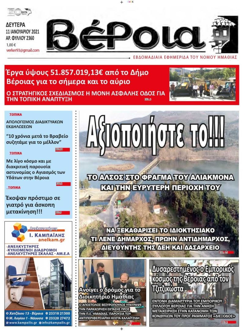 Πρωτοσέλιδο εφημερίδας ΒΕΡΟΙΑ