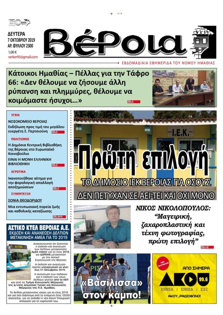Διαβάστε αύριο στη “ΒΕΡΟΙΑ” 7/10