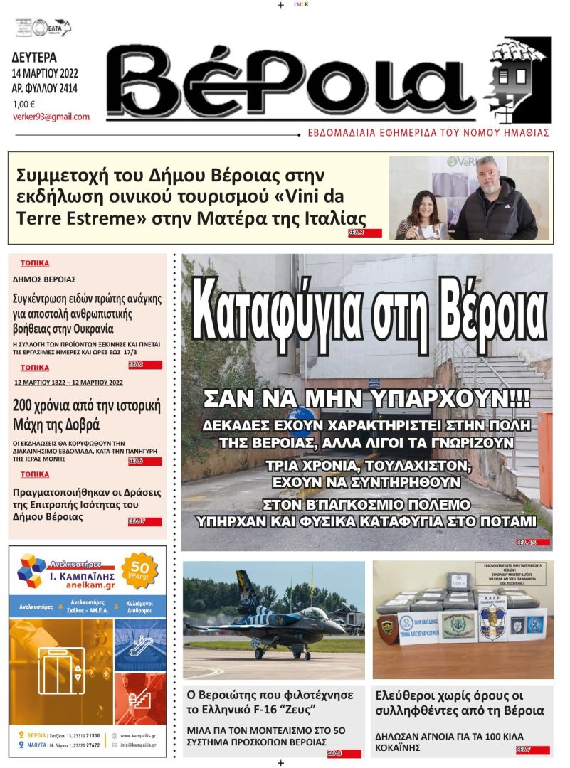 Διαβάστε αύριο στην εφημερίδα “ΒΕΡΟΙΑ” (13/3/2022)
