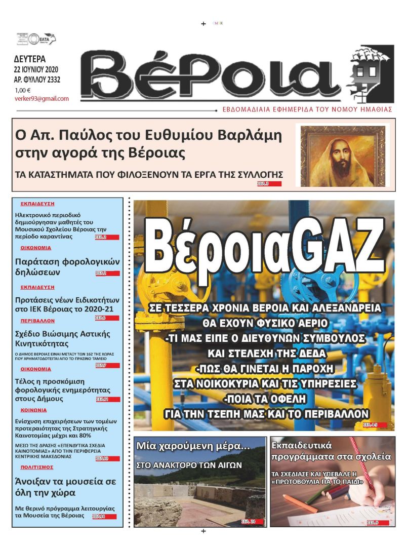 Διαβάστε αύριο στην εφημερίδα ΒΕΡΟΙΑ (22/6)