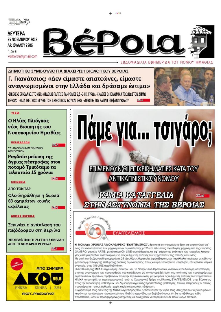 Διαβάστε αύριο στην εφημερίδα ΒΕΡΟΙΑ 25/11