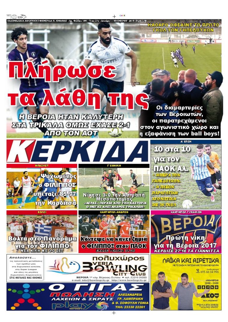 Η ΒΕΡΟΙΑ ΗΤΑΝ ΚΑΛΥΤΕΡΗ ΣΤΑ ΤΡΙΚΑΛΑ ΟΜΩΣ ΕΧΑΣΕ 2-1 ΑΠΟ ΤΟΝ ΑΟΤ