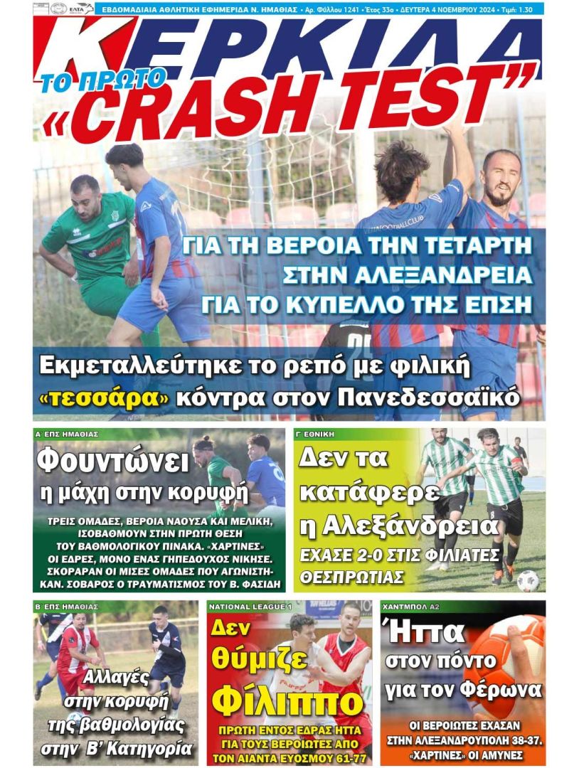 Διαβάστε αύριο στην αθλητική ΚΕΡΚΙΔΑ (4/11/2024)