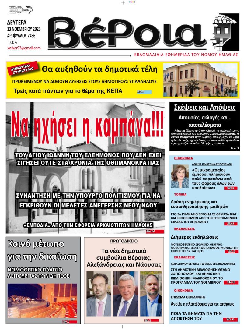 Διαβάστε αύριο στιε εφημερίδες ΒΕΡΟΙΑ – ΚΕΡΚΙΔΑ (13/11/2023)