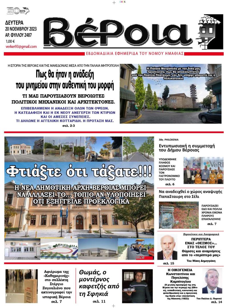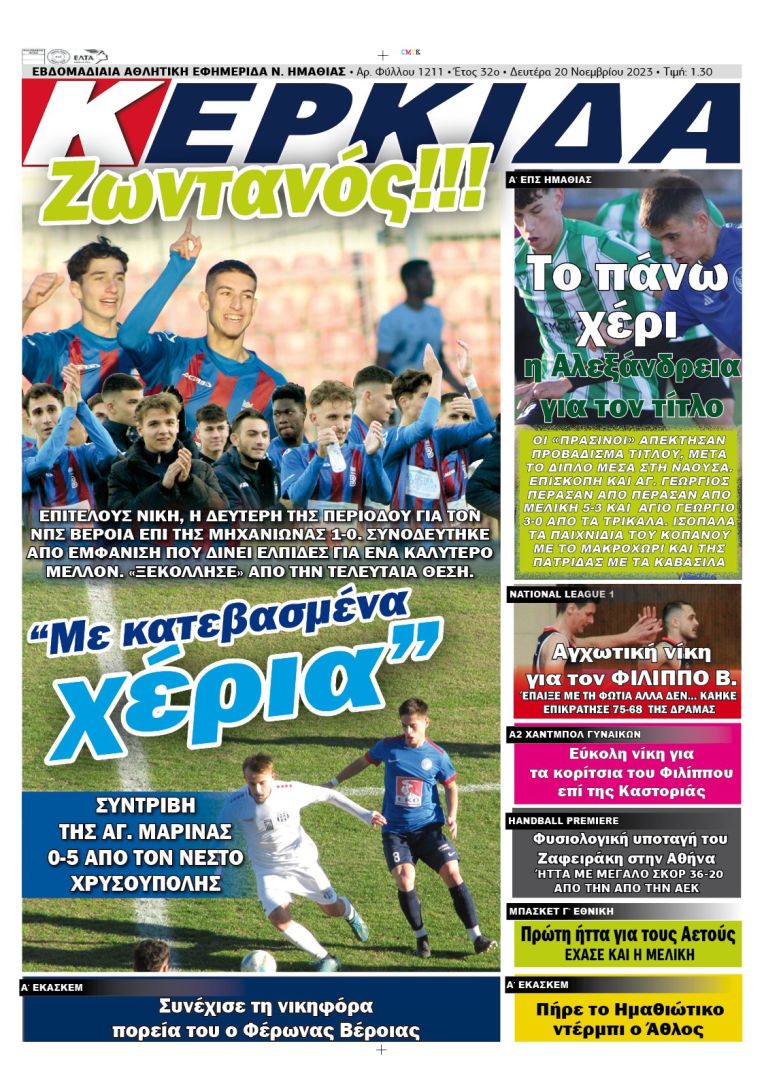Διαβάστε αύριο στις εφημερίδες ΒΕΡΟΙΑ – ΚΕΡΚΙΔΑ (20/11/2023)