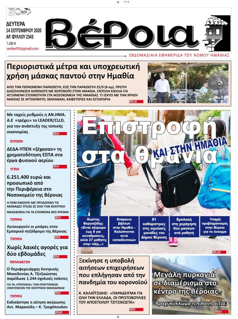 Διαβάστε σήμερα στην εφημερίδα “ΒΕΡΟΙΑ” (14/9)