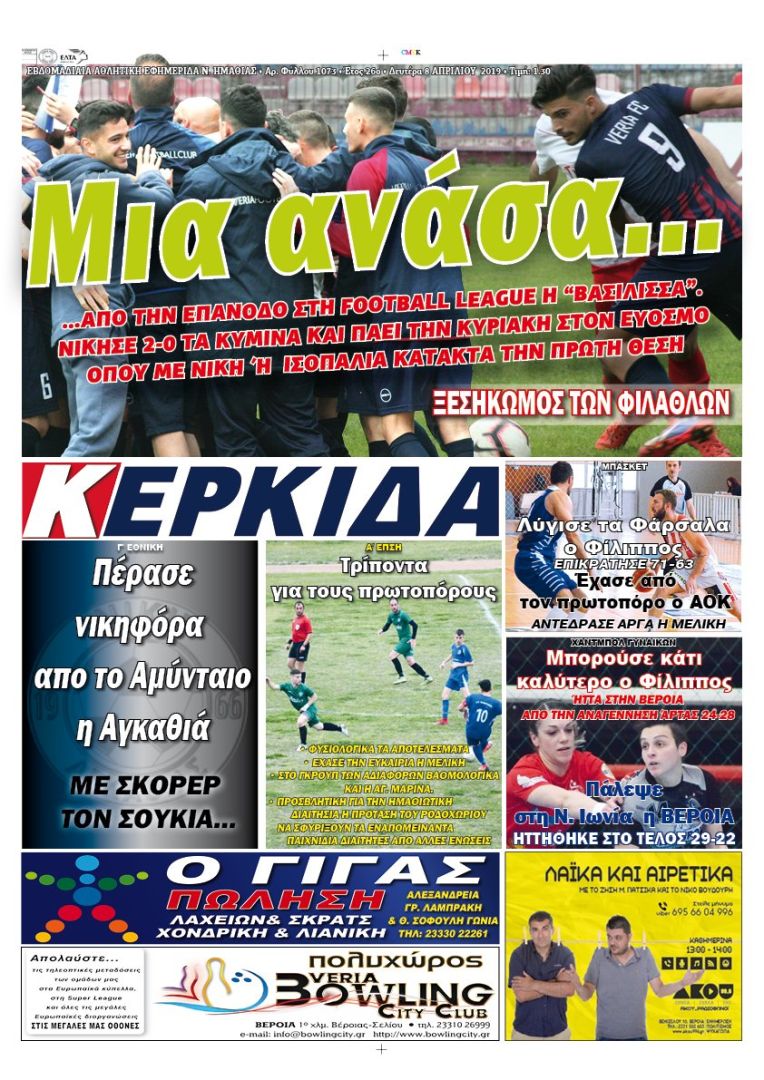 Διαβάστε σήμερα στην “ΚΕΡΚΙΔΑ” 8/4