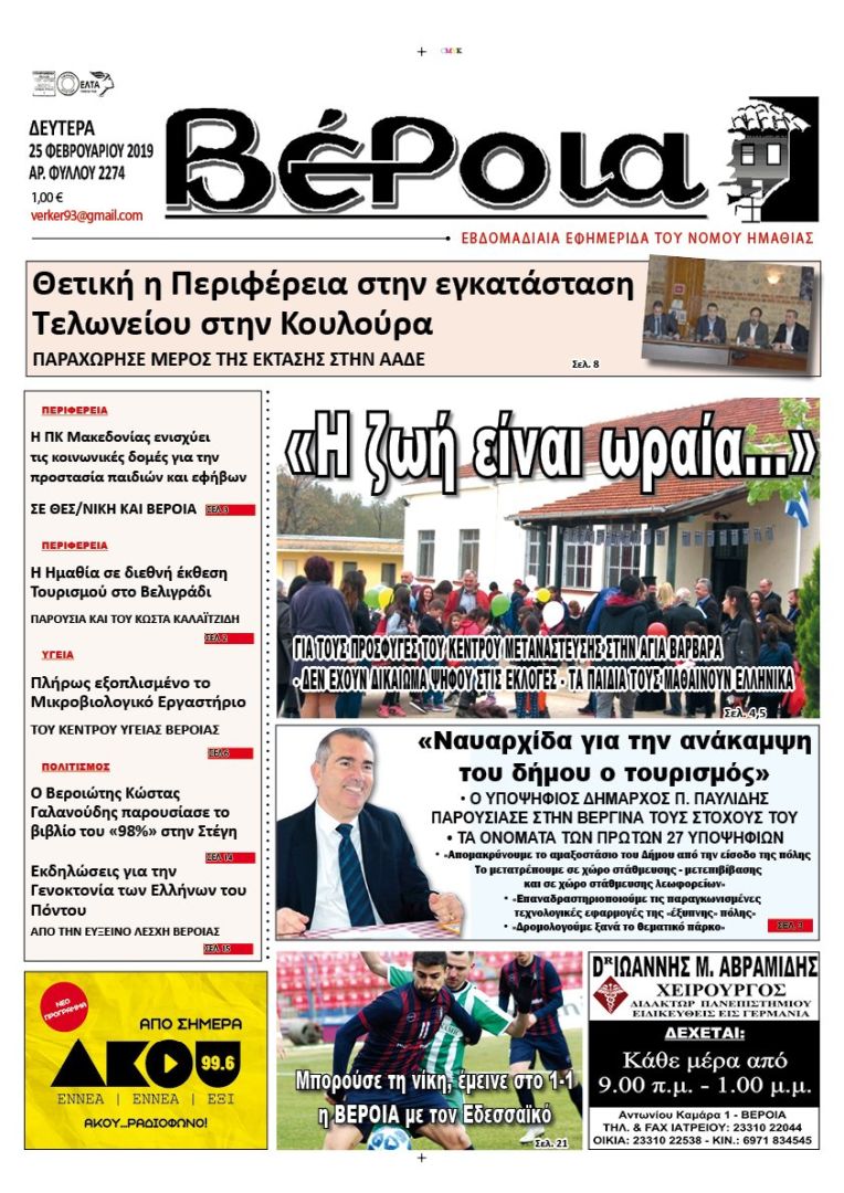 • Ο ΥΠΟΨΗΦΙΟΣ ΔΗΜΑΡΧΟΣ Π. ΠΑΥΛΙΔΗΣ ΠΑΡΟΥΣΙΑΣΕ ΣΤΗΝ ΒΕΡΓΙΝΑ ΤΟΥΣ ΣΤΟΧΟΥΣ ΤΟΥ