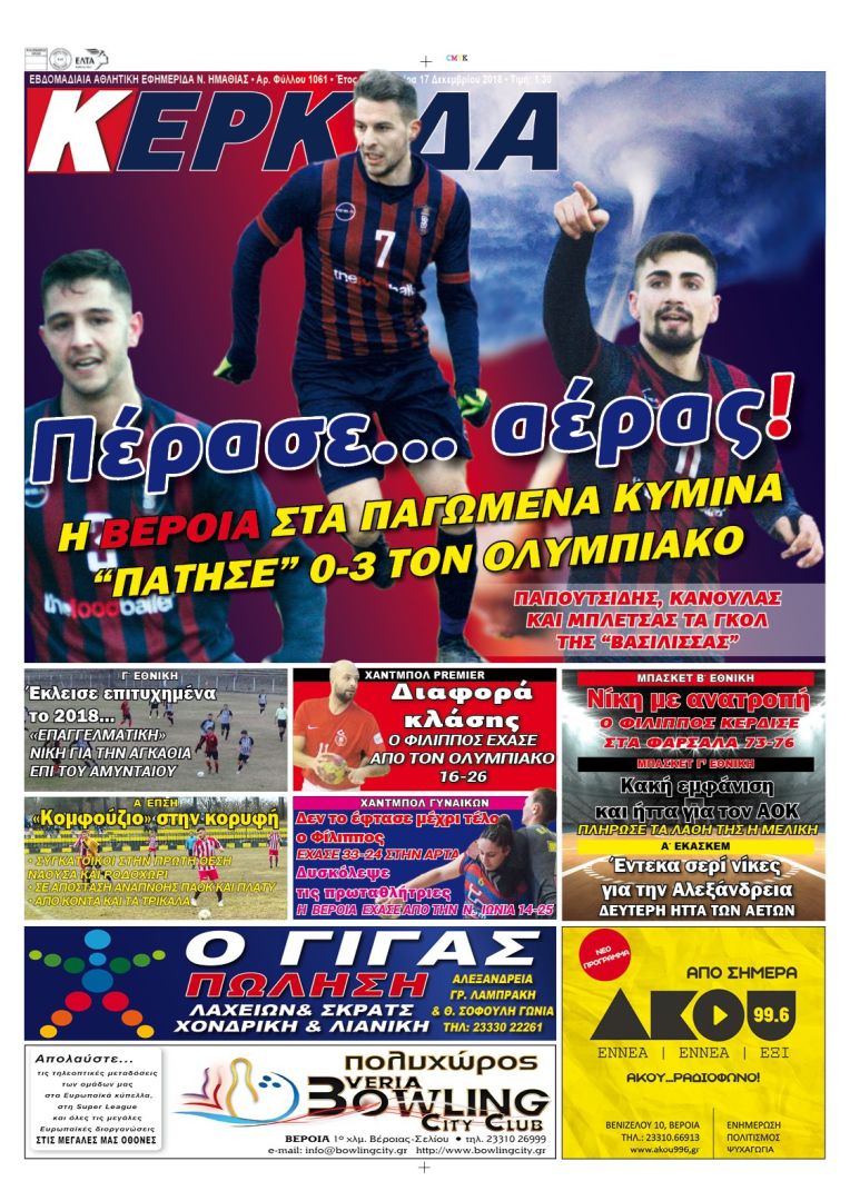 Η ΒΕΡΟΙΑ ΣΤΑ ΠΑΓΩΜΕΝΑ ΚΥΜΙΝΑ “ΠΑΤΗΣΕ” 0-3 ΤΟΝ ΟΛΥΜΠΙΑΚΟ