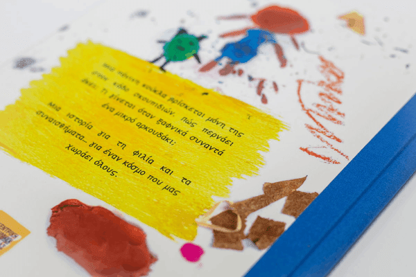 Πρόκειται για ένα παιδικό υβριδικό βιβλίο που συνδυάζει το ελληνικό αλφάβητο και το ελληνικό αλφάβητο μπράιγ και υλοποιήθηκε από παιδιά με και χωρίς οπτική αναπηρία. Η ιστορία και οι εικόνες του βιβλίου δημιουργήθηκαν κατά την διάρκεια τριών συμμετοχικών εργαστηρίων του προγράμματος που είχε στόχο τη συνύπαρξη μιας ομάδας χωρίς αποκλεισμούς και την ενίσχυση της αποδοχής της διαφορετικότητας από την παιδική ηλικία.