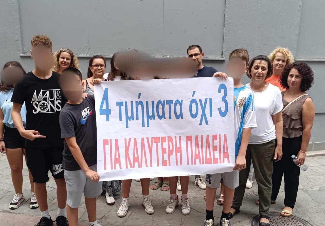 Τα 4 τμήματα λειτουργούσαν κανονικά την περίοδο 2023-2024 και επαρκούσαν και οι αίθουσες και οι καθηγητές για τη λειτουργία τους, οπότε δεν υπάρχει κάποιο διαδικαστικό ζήτημα. Σαν σύλλογος ζητάμε να παραμείνουν ως έχουν και να μη συγχωνευτούν σε 3 τμήματα.. Εκφράζουμε την επιθυμία μας να αντιμετωπίσετε το ζήτημα με προτεραιότητα στην παροχή ποιοτικής εκπαίδευσης για τα παιδιά μας. Μετά από μια επιπλέον εγγραφή τα παιδιά ανέρχονται στο σύνολο των ατόμων με αριθμό 82..Ελπίζουμε να εισακουστούν οι φωνές των Γονέων και των παιδιών ώστε να μην μειωθούν τα τμήματα…»
