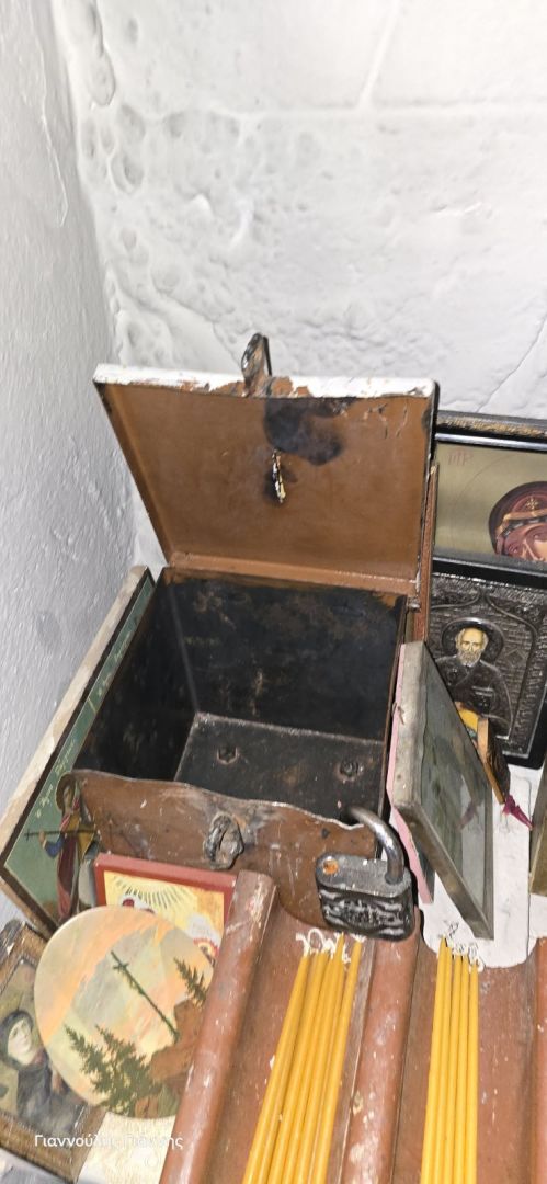 Άγνωστοι διέρρηξαν πιθανότατα προχθές το μικρο παρεκκλήσι διπλα στην εκκλησία της Παναγίας και μετα παραβίασαν την κλειδαριά από το μικρο παγκάρι που υπήρχε εκεί.