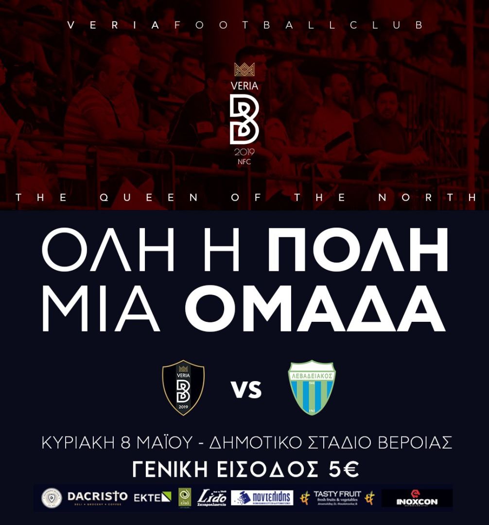 Την Κυριακή 8 Μαΐου 2022 και ώρα 16:30 στο Δημοτικό Στάδιο Βέροιας, διεξάγεται το πρώτο μπαράζ για την άνοδο στη Superleague μεταξύ Βέροιας και Λεβαδειακού. Σε αυτό το ραντεβού με την Ιστορία της Βασίλισσας του Βορρά, δεν πρέπει να λείψει κανείς! Η ΠΑΕ ΝΠΣ ΒΕΡΟΙΑ καλεί όλο τον φίλαθλο κόσμο να γεμίσει το γήπεδο, να στηρίξει την ομάδα της πόλης μας και ορίζει