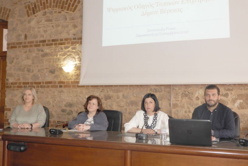 Έναν ψηφιακό οδηγό για την προβολή τοπικών επιχειρήσεων, δημιουργεί ο δήμος Βέροιας σε συνεργασία με τον εμπορικό σύλλογο και την ομοσπονδία επαγγελματιών βιοτεχνών. Την παρουσίαση αυτής της προσπάθειας (με αφορμή την Ημέρα Ελληνικού Εμπορίου) έκαναν στην χθεσινή συνέντευξη Τύπου στο Δημαρχείο, ο αντιδήμαρχος ηλεκτρονικής διακυβέρνησης και ψηφιακής πολιτικής του δήμου Καλλίστρατος Γρηγοριάδης, η πρόεδρος του εμπορικού συλλόγου Αθηνά Τσιπουρίδου και η γενική γραμματέας της ομοσπονδίας επαγγελματιών βιοτεχνών Εύχαρις Κιουλπεκίδου που εκπροσωπούσε τον πρόεδρο Λάζαρο Ασλανίδη. Τον συντονισμό της συνέντευξης είχε η υπεύθυνη Τύπου του εμπορικού συλλόγου Έλσα Φανάρα.