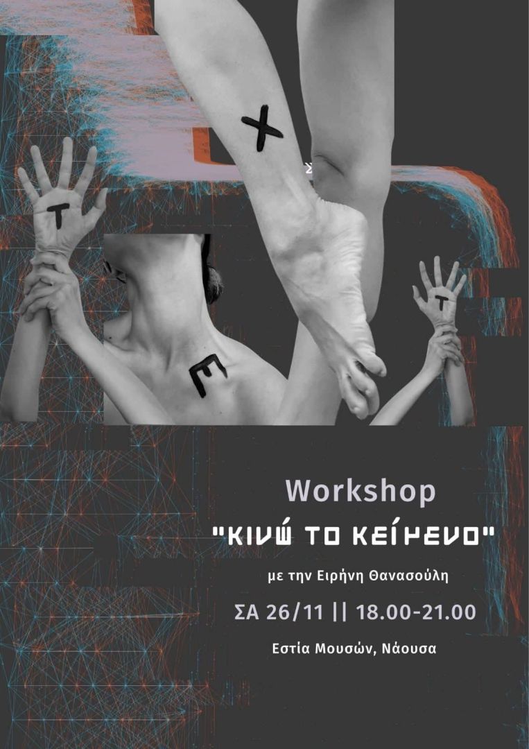 Το Δημοτικό Ωδείο Νάουσας “Εστία Μουσών” υπό την αιγίδα του Δήμου Ηρωικής Πόλης Νάουσας και σε συνεργασία με τον Σύλλογο Γονέων και Κηδεμόνων της Εστίας Μουσών, διοργανώνει το Σάββατο 26 και την Κυριακή 27 Νοεμβρίου 2022, διήμερο σεμινάριο κλασικού και σύγχρονου χορού για παιδιά, εφήβους και ενήλικες με εισηγήτρια την διακεκριμένη καθηγήτρια χορού κ. Ειρήνη Θανασούλη, Διπλωματούχο Εθνικής Ακαδημίας Μουσικής Σόφιας. Ταυτόχρονα, θα πραγματοποιηθεί από την ίδια το workshop «Kινώ το Kείμενο» με στοιχεία θεατρικού παιχνιδιού, συνδυάζοντας τον χορό και τις ανοιχτές φόρμες έκφρασης.
