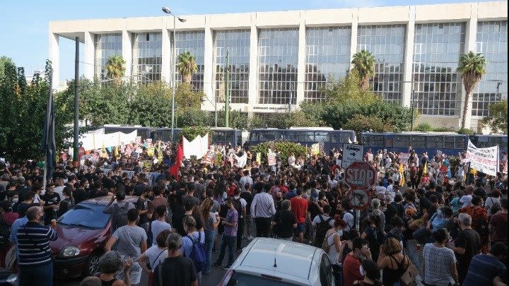 Χειροκροτήματα και αντιφασιστικά συνθήματα κυριαρχούν αυτή την ώρα έξω από το Εφετείο Αθηνών κάθε φορά που ακούγεται από τα μεγάφωνα η ετυμηγορία του δικαστηρίου υπέρ της ενοχής των κατηγορουμενων. Από τα μεγάφωνα κόσμος ενημερώνει για τις εξελίξεις μέσα στο δικαστήριο. Με το άκουσμα της ενοχής του Νίκου Μιχαλολιάκου ο κόσμος ξέσπασε σε χειροκροτήματα ενώ άρχισε να φωνάζει: «Ο Παύλος ζει, τσακίστε τους ναζί».