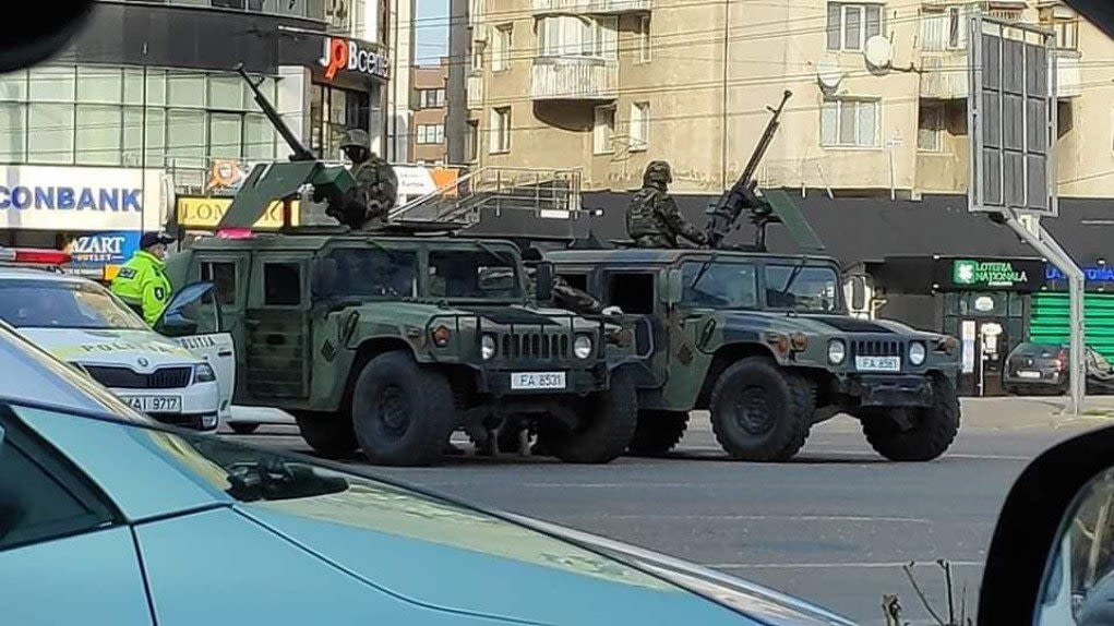 Στη φωτογραφία Στρατός και Αστυνομία, στην πρωτεύουσα της Μολδαβίας Κισινάου, για την τήρηση των μέτρων προς αποφυγή της εξάπλωσης του κορωνοϊού Covid-19.