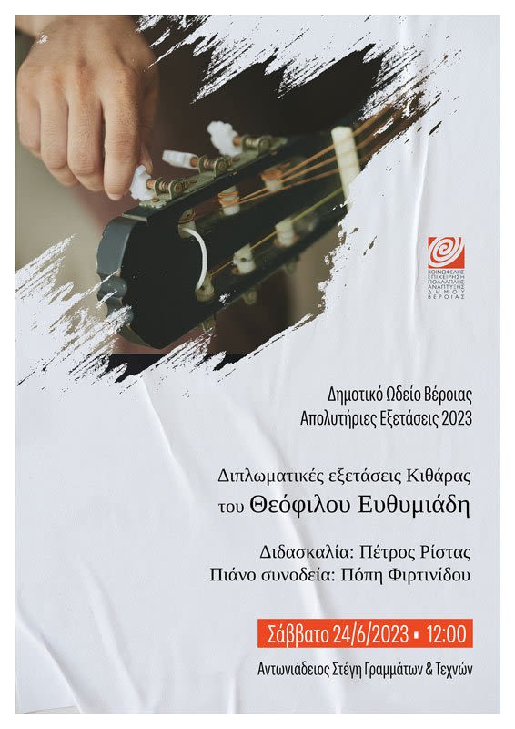 Βέροιας, στην τάξη κιθάρας του Πέτρου Ρίστα θα παρουσιάσει το διπλωματικό του