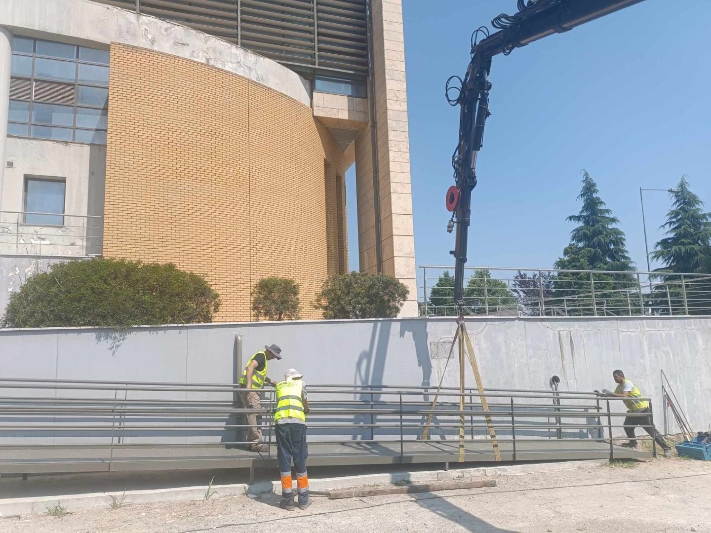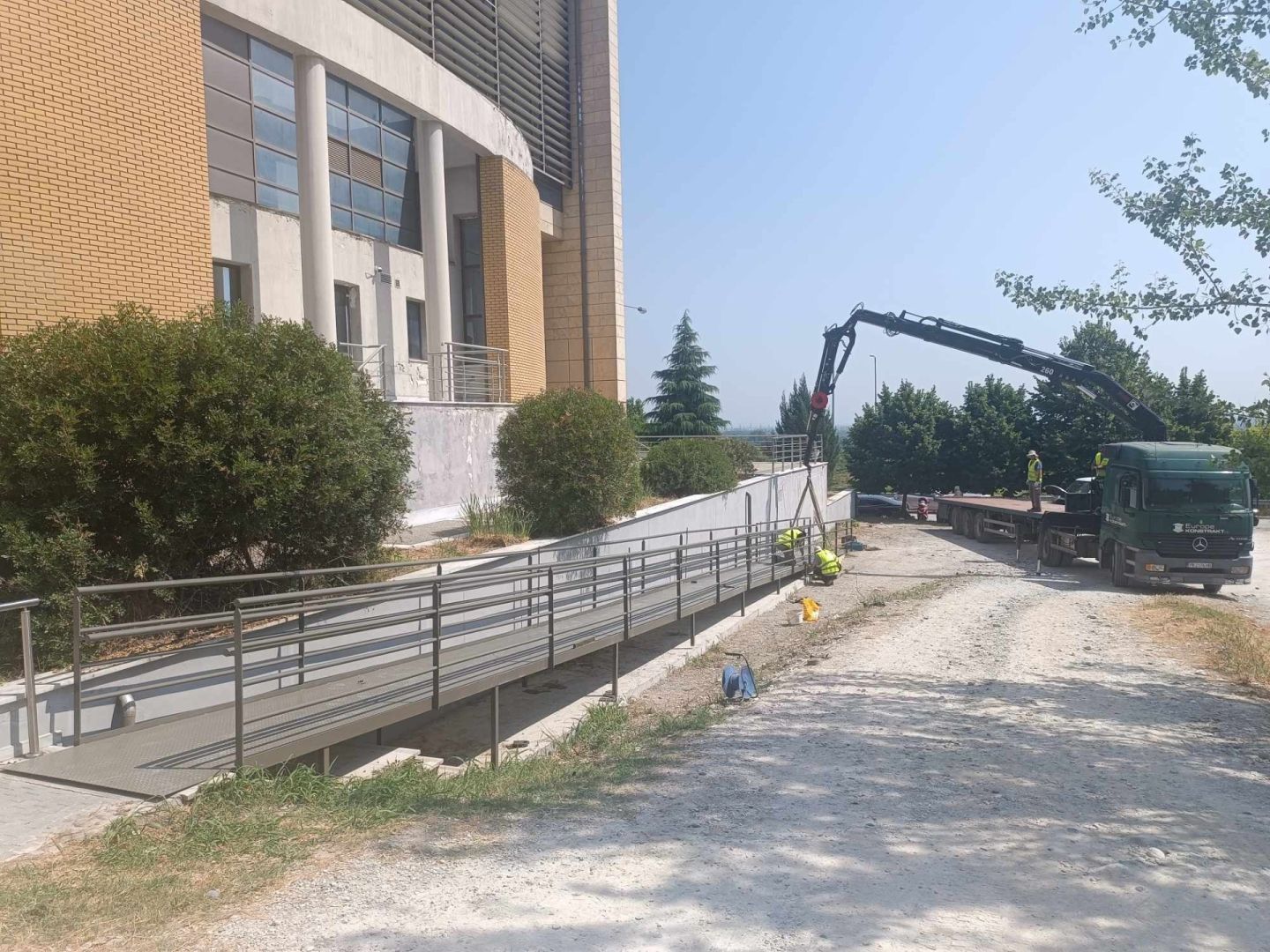 Το πρωί της Πέμπτης(19/6/2025) κατά μήκος του πλαϊνού τμήματος του Δικαστικού Μεγάρου Βέροιας συνεργείο τοποθέτησε μια μεγάλη μεταλλική ράμπα για πρόσβαση ΑμεΑ στο κτίριο. Αν και είναι από τα πιο σύγχρονα δικαστικά μέγαρα της χώρας, υπάρχει μόνο μια μικρή ράμπα που δεν εξυπηρετούσε ιδιαίτερα και ήταν ανάγκη να δοθεί λύση.