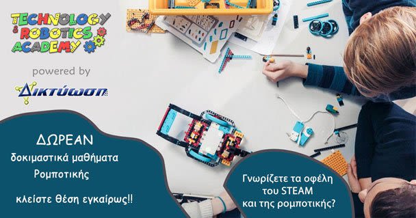 ΔΩΡΕΑΝ δοκιμαστικά μαθήματα Ρομποτικής και κώδικα στη ΔΙΚΤΥΩΣΗ