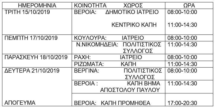 Οκτωβρίου χωρίς ραντεβού σε περιοχές που περιλαμβάνουν όλο το Δήμο