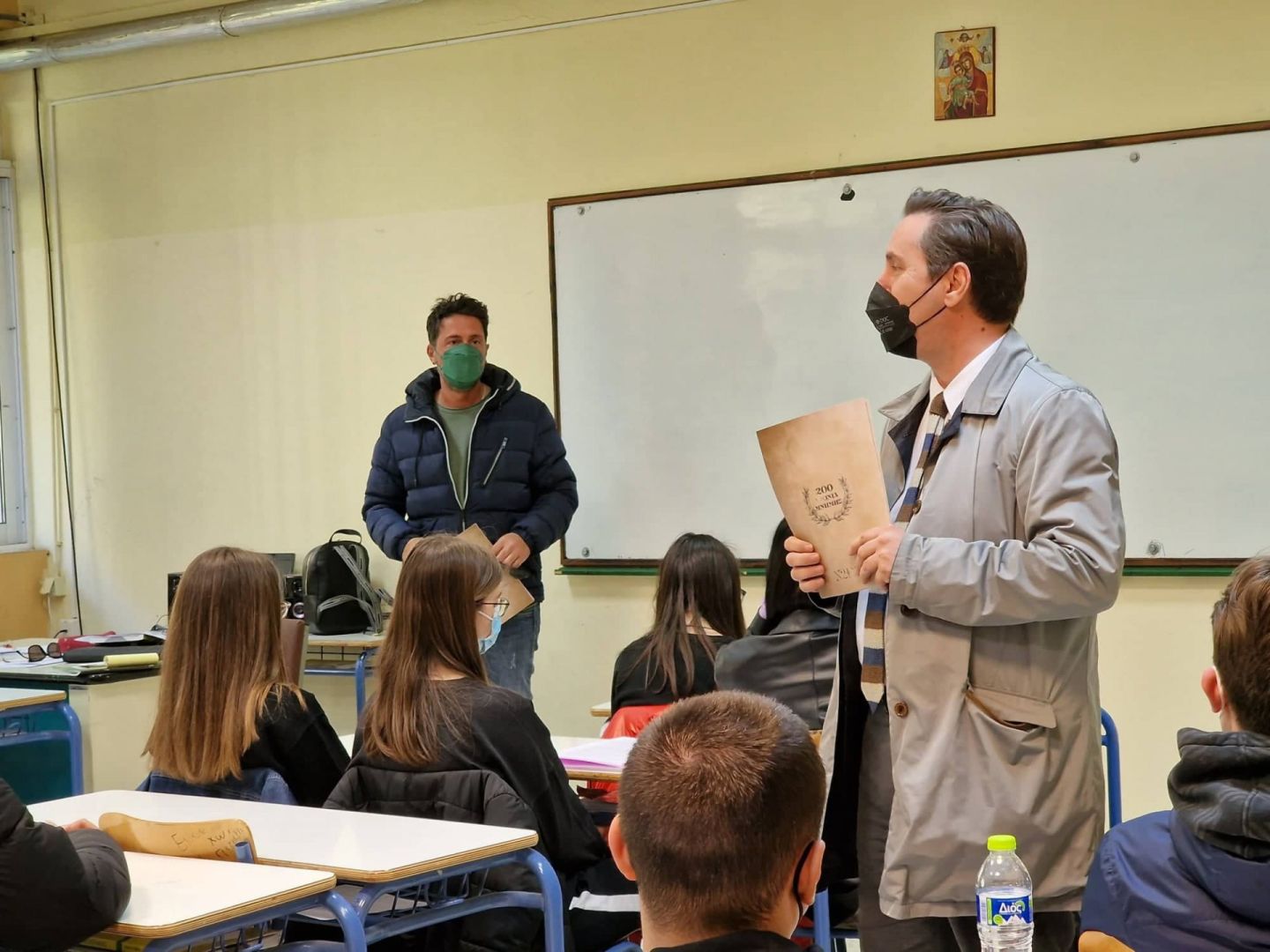 Με αφορμή την έκδοση των επετειακών τετραδίων ο Δήμαρχος Νάουσας Νικόλας Καρανικόλας, συνοδευόμενος από τον Αντιδήμαρχο Πολιτισμού Γιώργο Τριανταφύλλου επισκέφθηκε σήμερα Τρίτη (12.04.2022) το 2ο Γενικό Λύκειο Νάουσας και συζήτησαν με τους μαθητές και τους καθηγητές για την ιστορία της Ηρωικής Πόλης της Νάουσας, καθώς και για θέματα πολιτισμού, σπουδών κ.ά.