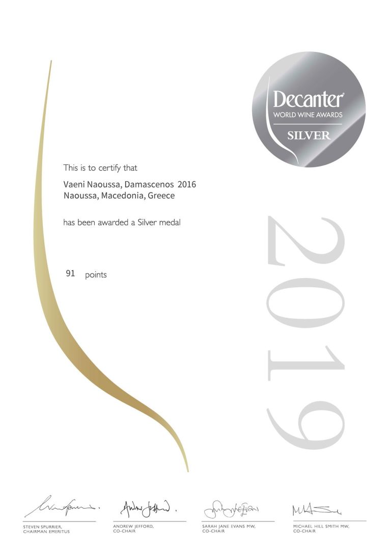Δύο ασημένια μετάλλια για τα κρασιά Δαμασκηνός και Νάουσα Grande Reserve του Συνεταιρισμού ΒΑΕΝΙ ΝΑΟΥΣΑ!