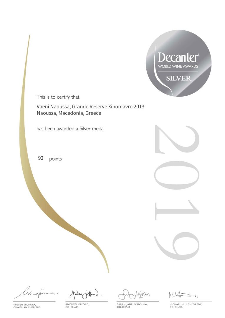 Grande Reserve του 2013 και απέσπασε δύο ασημένια μετάλλια με υψηλότατη βαθμολογία για