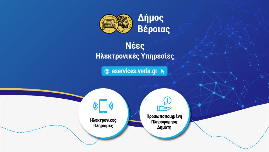 Ενισχύει την ψηφιοποίηση των υπηρεσιών του ο Δήμος Βέροιας, εγκαινιάζοντας δύο νέες ηλεκτρονικές υπηρεσίες. Οι Ηλεκτρονικές Πληρωμές και η Προσωποποιημένη Πληροφόρηση Δημότη βρίσκονται πλέον στη διάθεση των δημοτών, μέσω της ενιαίας πλατφόρμας ψηφιακών υπηρεσιών eservices.veria.gr. Αφορούν στην εξυπηρέτηση και τη διευκόλυνση πολίτη για την εξόφληση βεβαιωμένων και μη βεβαιωμένων οφειλών (Ηλεκτρονικές Πληρωμές) και για τη δυνατότητα δημιουργίας προφίλ του δημότη με καταχώρηση στοιχείων επικοινωνίας και ενημέρωση από τον δήμο για δράσεις και νέες υπηρεσίες (Προσωποποιημένη Πληροφόρηση Δημότη).