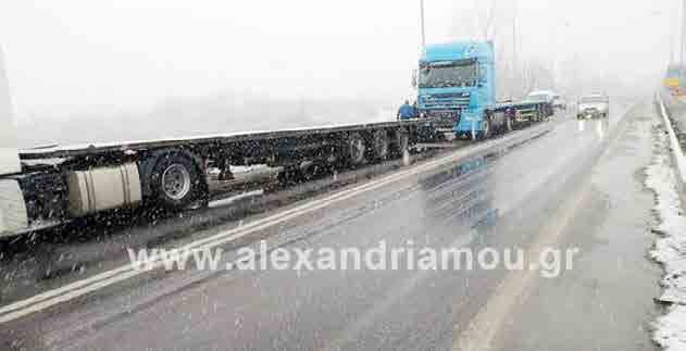 Τροχαίο ατύχημα σημειώθηκε χθες Πέμπτη, το μεσημέρι, στον κόμβο Νησελίου λίγο πριν την Εγνατία οδό, όταν «δίπλωσε» νταλίκα λόγω της ολισθηρότητας του οδοστρώματος και προκλήθηκε σύγκρουση με την επόμενη νταλίκα η οποία την ακολουθούσε.