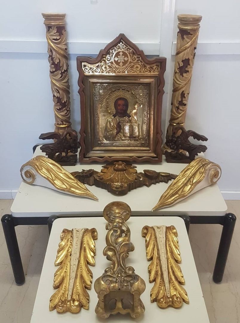 • ξυλόγλυπτα τμήματα Ιερού Ναού,