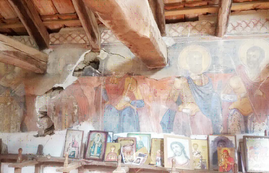 Η εκκλησία του Αγίου Νικολάου στην Μαρούσια αρχίζει και καταρρέει. Φαίνεται εξάλλου και στην φωτογραφία η αγιογραφία αριστερά. ΠΡΕΠΕΙ να σωθεί.