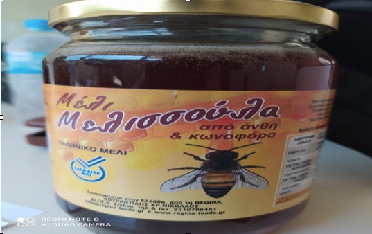 (β) Μέλι από άνθη και κωνοφόρα, εμπορικής ονομασίας «Μελισσούλα», καθαρού βάρους 900g, με αριθμό παρτίδας LΟΤ 1121720 και ημερομηνία λήξης 20/04/23. Το ανωτέρω προϊόν συσκευάζεται από την επιχείρηση «REGINA, ΚΟΥΡΑΝΤΙΔΗΣ ΧΡ. ΝΙΚΟΛΑΟΣ», ενώ ελήφθη από το υποκατάστημα της επιχείρησης «ΕΛΛΗΝΙΚΕΣ ΥΠΕΡΑΓΟΡΕΣ ΣΚΛΑΒΕΝΙΤΗΣ Α.Ε.Ε.», Ευριπίδου 69 & Αιγέως 31-35 & Ασκληπιού, Καλλιθέα.