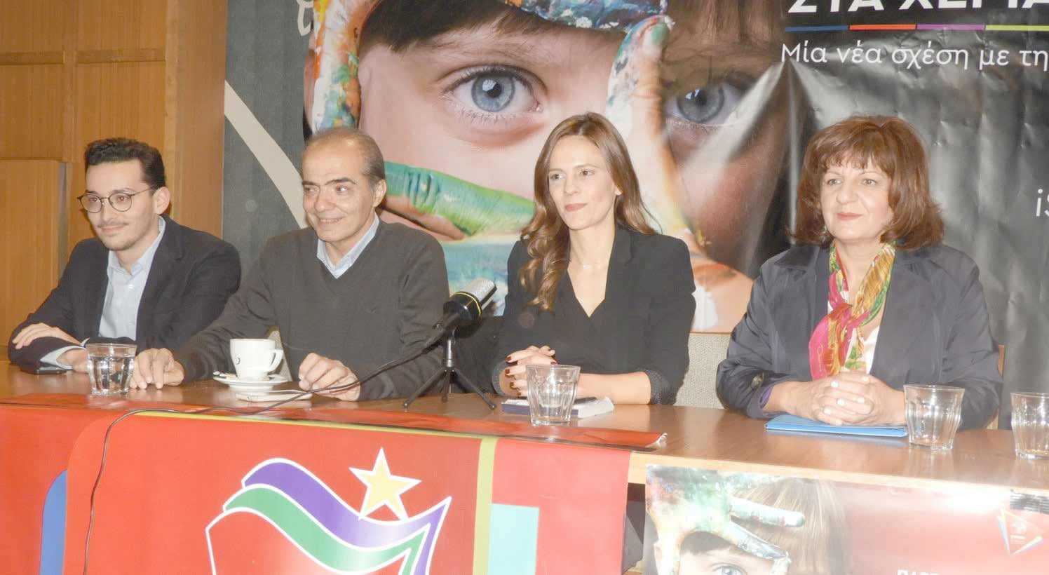 Η κα Αχτσιόγλου, που πλαισιωνόταν από την βουλευτή Ημαθίας Φρόσω Καρασαρλίδου, τον εκπρόσωπο της Προοδευτικής Συμμαχίας Στέργιο Καλπάκη και τον συντονιστή της Ν.Ε. Ημαθίας Τάσο Κωστόπουλο, τόνισε ότι η Ν.Δ. υλοποιεί μια αυταρχική πολιτική που θέλει να έχει τον έλεγχο για τα πάντα, είναι βαθιά οπισθοδρομική, οδηγεί με τεράστια άλματα τη χώρα προς τα πίσω στον εργασιακό τομέα, με υποβάθμιση του Σώματος Επιθεώρησης Εργασίας, την κατάργηση της προστασίας των εργαζομένων από τις απολύσεις, της συλλογικής διαπραγμάτευσης κ.ά και είναι επικίνδυνη, όπως είπε, στη διαχείριση του μεταναστευτικού, ελέω ισορροπιών με το ακροδεξιό ακροατήριο. Εκανε επίσης λόγο για «κουκουλώματα» σε θέματα που αφορούν τη Δικαιοσύνη (Novartis), για ευνοϊκές ρυθμίσεις στις Τράπεζες με τα θαλασσοδάνεια, για σκληρή εφαρμογή «νόμου και τάξης» και ότι γκρέμισε σε ελάχιστους μήνες, ότι έχτισε ο ΣΥΡΙΖΑ, ως κοινωνία, τα τελευταία χρόνια. «Δυστυχώς τα αποτελέσματα άρχισαν να φαίνονται, και ήδη έχουμε ρεκόρ απολύσεων» είπε η πρώην υπουργός Εργασίας τονίζοντας ότι «πρέπει οπωσδήποτε να μπει ένα φρένο σε όλα αυτά».