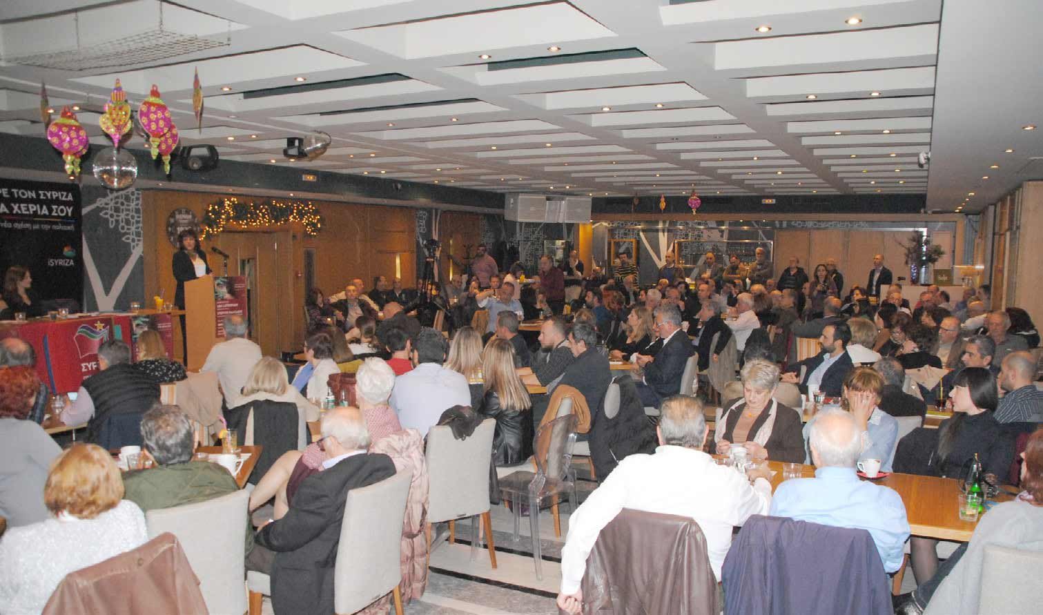 Ακολούθησε στον ίδιο χώρο, κεντρική ομιλία της Έφης Αχτσιόγλου σε ακροατήριο που γέμισε ασφυκτικά την αίθουσα της Ελιάς.
