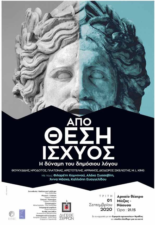 Θουκυδίδης, Ηρόδοτος, Πλάτωνας, Αριστοτέλης, Αρριανός, Διόδωρος Σικελιώτης, M.L. King στο Αρχαίο Θέατρο Μίεζας, σήμερα Τρίτη 1 Σεπτεμβρίου 2020, στις 21:15.
