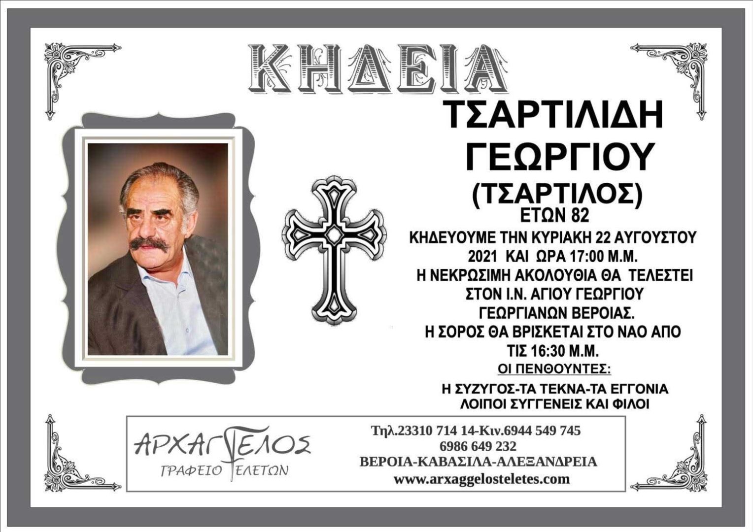 Η κηδεία θα γίνει σήμερα στις 17:00 στον Ιερό Ναό Αγίου Γεωργίου Γεωργιανών Βέροιας