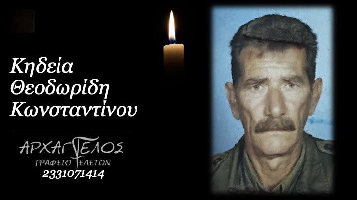Έφυγε από τη ζωή και κηδεύεται αύριο Δευτέρα 23 Σεπτεμβρίου 2024 στις 5.30 μ.μ. από τον Ιερό Ναό Αγίων Κων/νου και Ελένης Π. Σκυλίτσι, ο Κωνσταντίνος Θεοδωρίδης σε ηλικία 77 ετών.