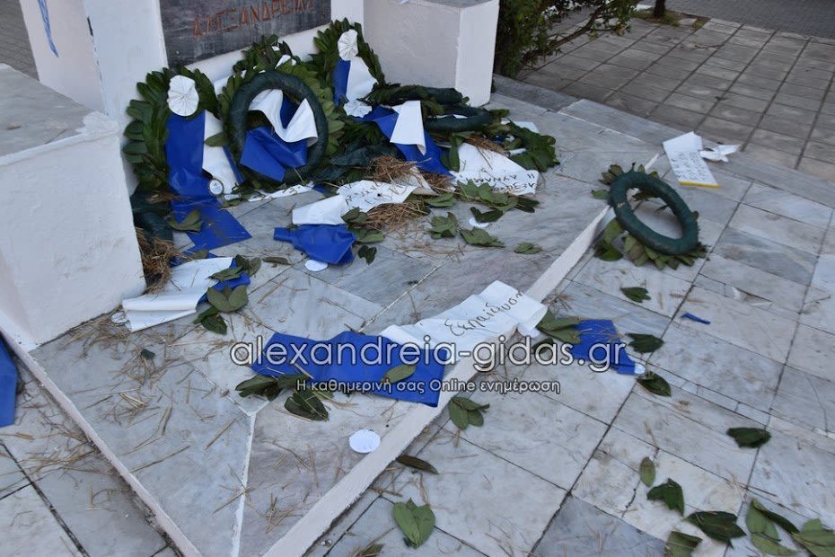 Λίγες ημέρες μετά τις εκδηλώσεις Απελευθέρωσης στην πόλη της Αλεξάνδρειας, οι πολίτες αντίκρισαν άσχημες εικόνες στο Ηρώο το πρωί της Παρασκευής 23 Οκτωβρίου 2020.