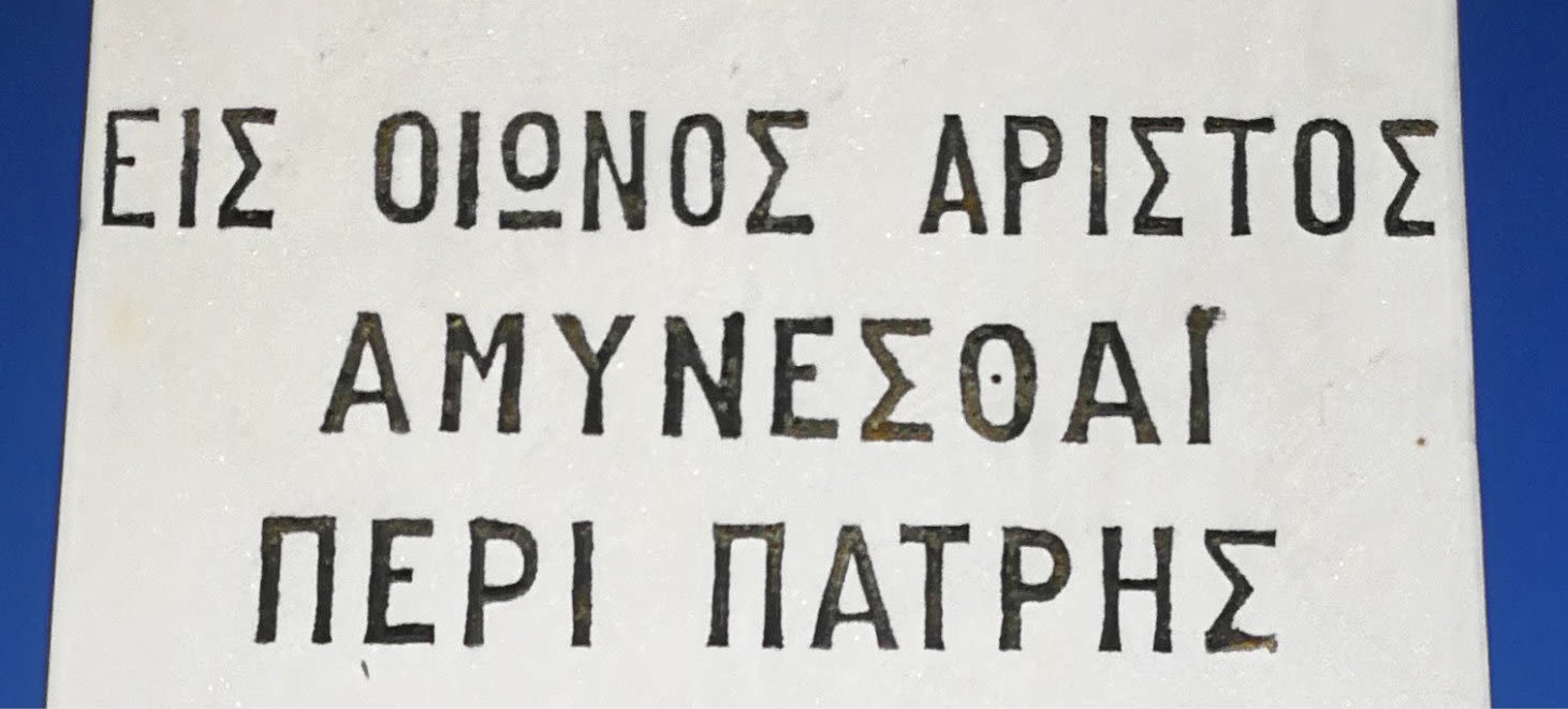 Στην Ιλιάδα ο Έκτορας μιλώντας παραινετικά στους συμπολεμιστές του φώναξε: «εἷς οἰωνὸς ἄριστος ἀμύνεσθαι περὶ πάτρης» ( Ιλιάδ. Μ 243). Δηλαδή: ένα είναι το καλό σημάδι, να πολεμά κανείς για την πατρίδα. Αυτό το λήμμα στην πορεία των χιλιετηρίδων διατηρήθηκε και υπέστη παραφθορά τα τελευταία χρόνια, αφού πολλοί φωνάζουν πλέον: «Εις οιωνός άριστος αμύνεσθαι περί πάρτης». Εκφράζει την αλλαγή των αξιών στο διάβα του χρόνου. Ενώ στην αρχαιότητα δινόταν υπέρτατη αξία στην άμυνα για τη σωτηρία της πατρίδας, τώρα η αξία δίνεται στην άμυνα για τη σωτηρία του ατόμου. Και αν συνδυάσουμε τη νεοελληνική αυτή εκδοχή με τη ρήση «Η καλύτερη άμυνα είναι η επίθεση» τότε είναι σα να θεωρούμε αρετή την προσπάθεια για επικράτηση του ενός πάνω στον άλλο. Καταλήγουμε λίγο πολύ στον νόμο της ζούγκλας.