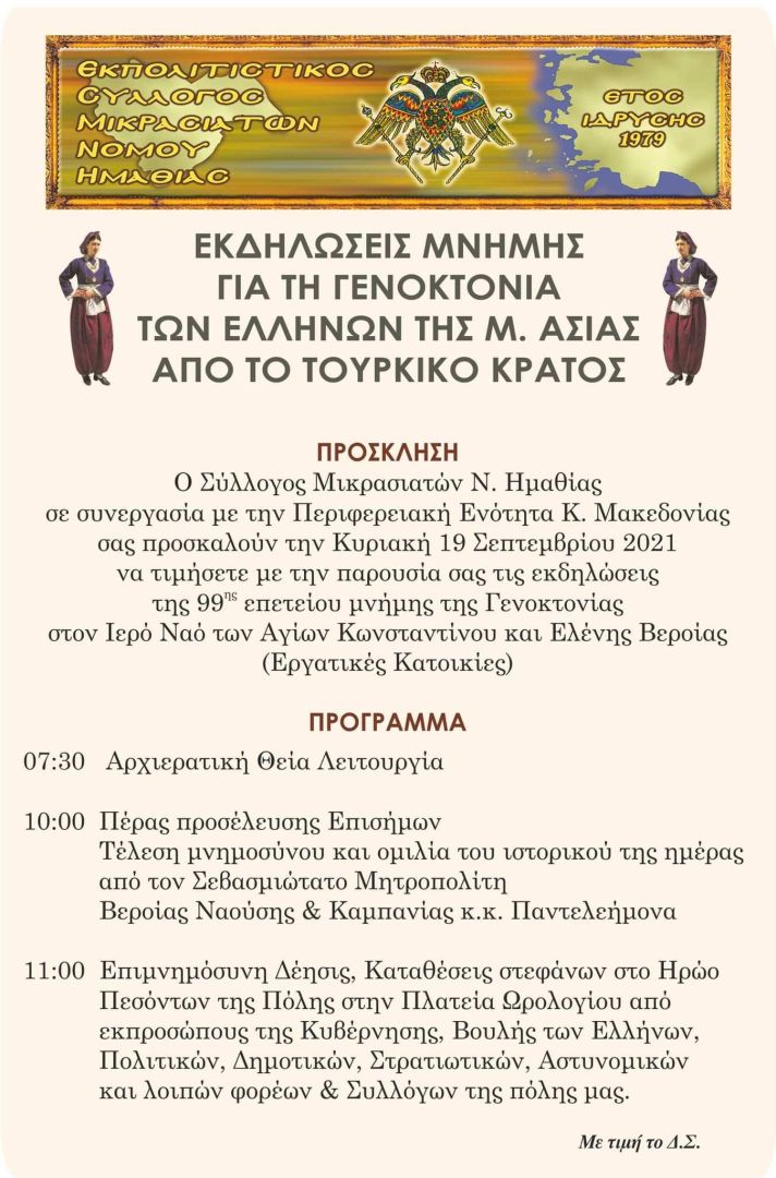 Εκδηλώσεις μνήμης από τον Μικρασιατικό Σύλλογο Ημαθίας για την 99η επέτειο γενοκτονίας