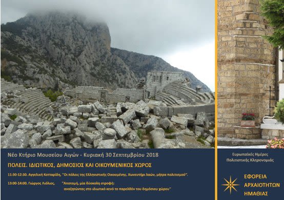 Η Εφορεία Αρχαιοτήτων Ημαθίας διοργανώνει στο πλαίσιο του εορτασμού των Ευρωπαϊκών Ημερών Πολιτιστικής Κληρονομιάς 2018, με θέμα τις Πόλ(ε)ις τις εξής εκδηλώσεις: