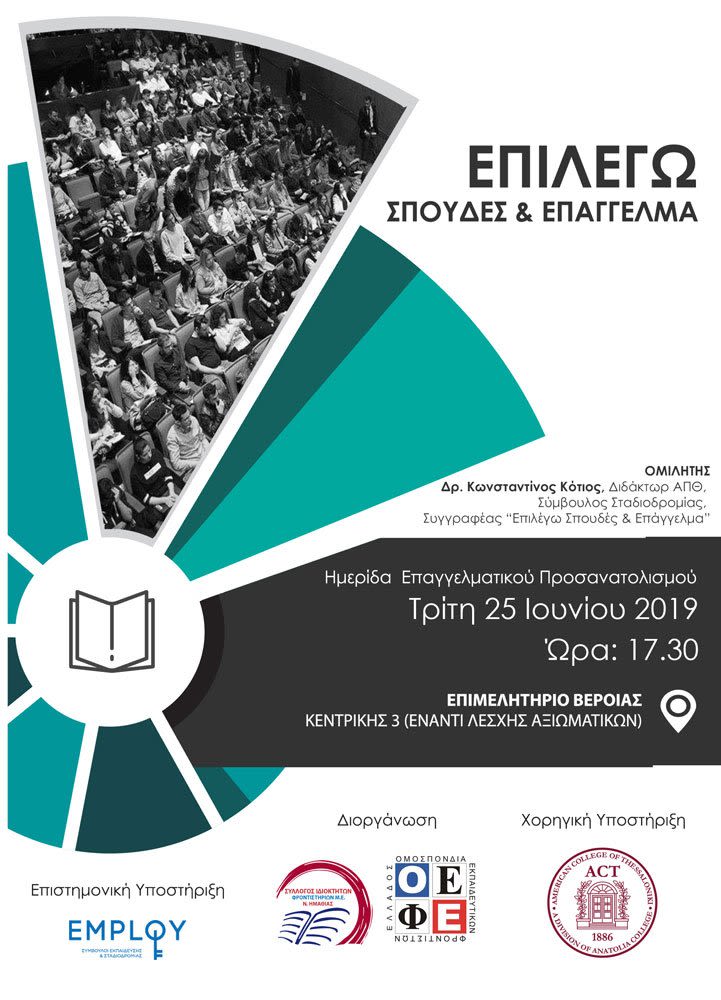 Νέο μηχανογραφικό, νέα τμήματα, νέο εξεταστικό σύστημα. Μαθητές και γονείς ανησυχούν και προβληματίζονται. Ο Σύλλογος Φροντιστών διοργανώνει και σας προσκαλεί, όπως κάθε χρόνο, εκδήλωση για την έγκυρη και αναλυτική πληροφόρηση. Την ενημέρωση, που θα γίνει στο Επιμελητήριο την Τρίτη 25 /6 στις 17 /30, θα κάνει ο κος Κότιος της εταιρείας EMPLOY.